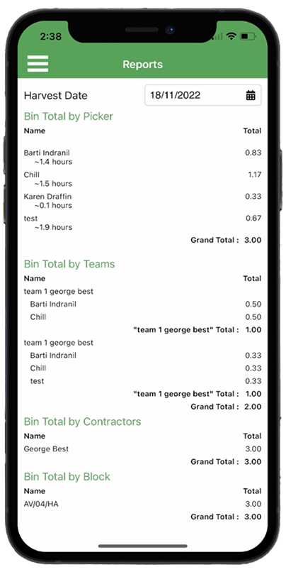 Our harvest system provides comprehensive control during peak season, tracking cartons and managing bins with pickers and crews.